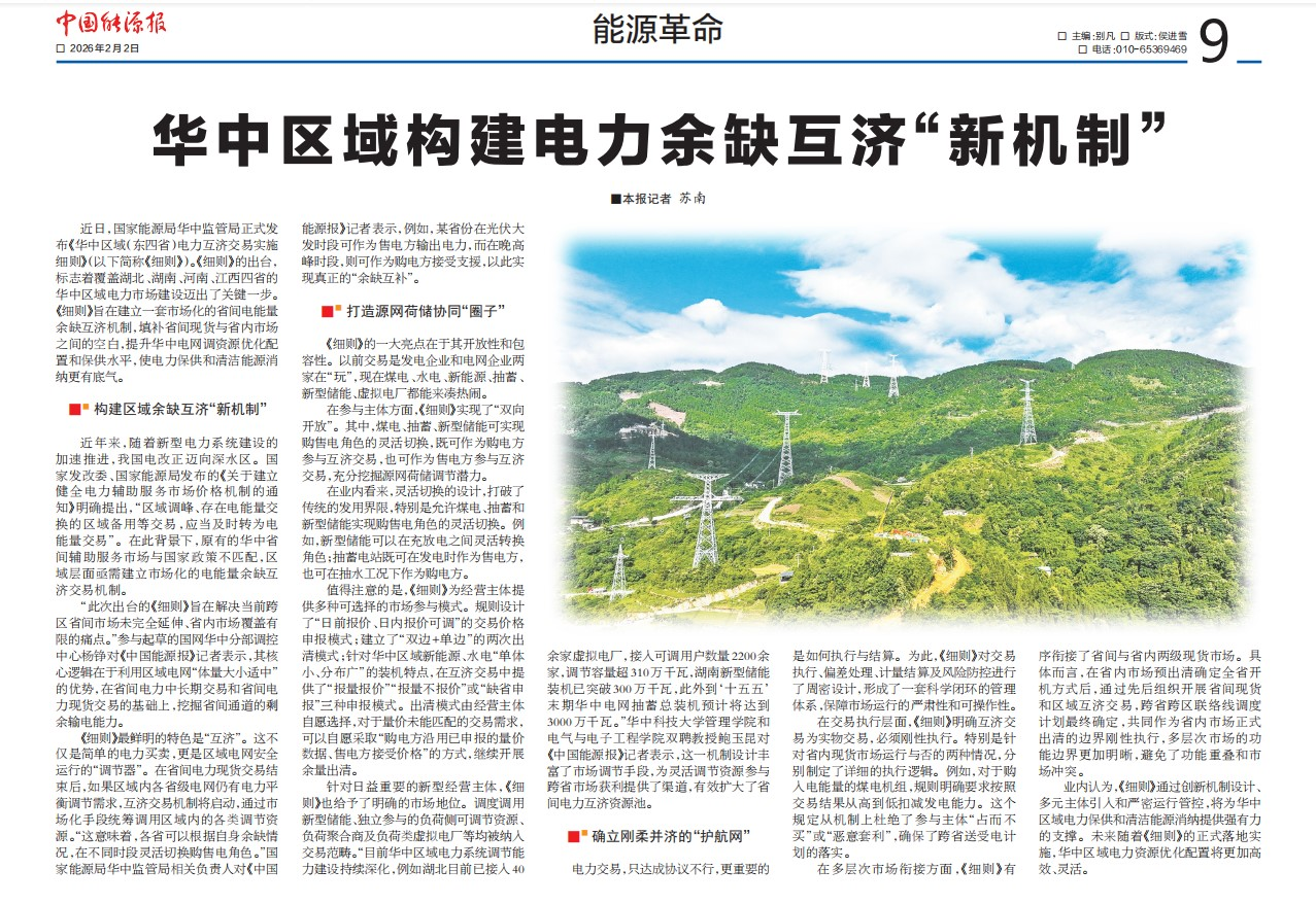 中国能源报:华中区域构建电力余缺互济“新机制”